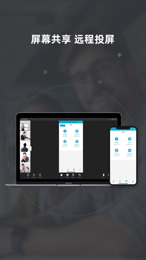 - 屏幕共享:共享手机屏幕给其他参会人,或把手机屏幕投屏到PC上