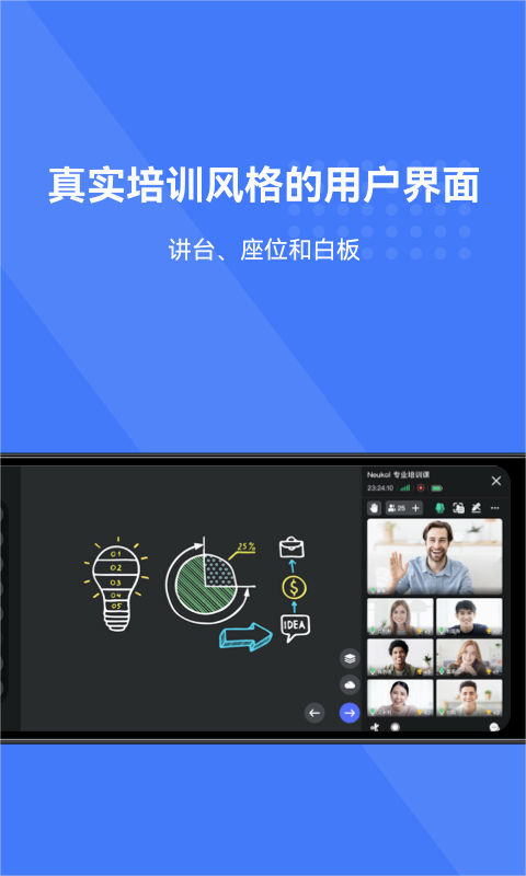 Neukol app,在线培训必备的手机软件,适用于多种培训场景,同时在线,互动,轻松交流,让教师与学生沟通更便捷,解决教师授课难题,远程更省心。