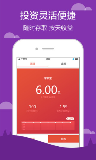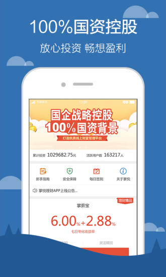 掌悦iOS版是一款非常实用的手机金融理财平台,这里拥有最专业的先进风控体系,外加大数据评估体系,为你的财产保驾护航,保证用户的资金的安全,同时最资深的理财团队为你创造丰富的高收益,快来下载体验吧。