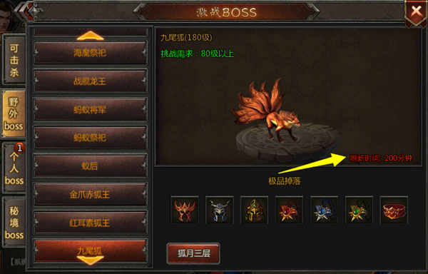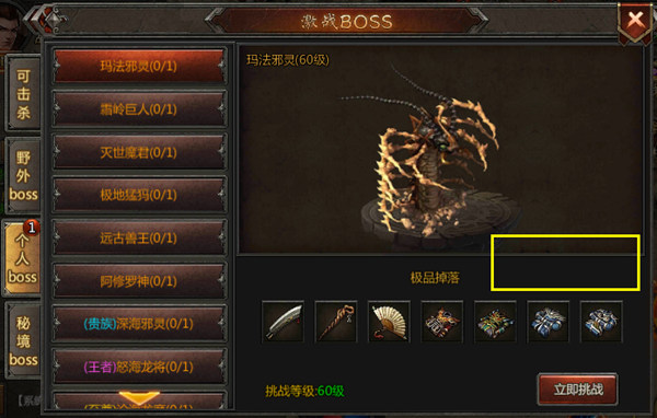 在传奇盛世中,有很多BOSS,比如个人BOSS,野外BOSS、秘境BOSS等。不停的boss分布在不同的区域,且难度也不同。所以获得的奖励也会不同。