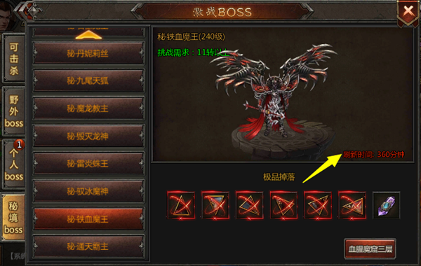 综上,我们可以发现,个人BOSS是没有刷新时间的。而野外BOSS的刷新时间会随着BOSS的难度二增加时间。秘境BOSS通常都是一样的时间。