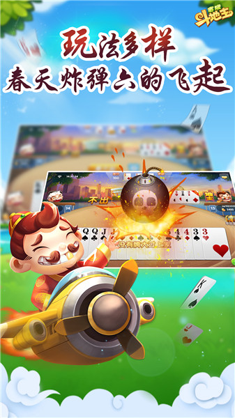 3、包含斗地主经典玩法、癞子玩法和天地癞子玩法的合集版本,地主与农民的博弈,飞机、炸弹、王炸等耳熟能详的牌型让你爽翻天。